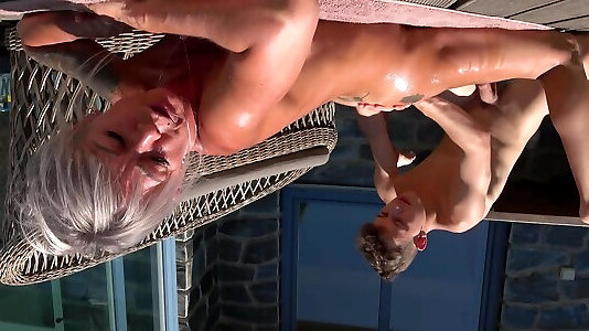 dicking en plein air dans le jardin avec la blonde platine letty et son voisin