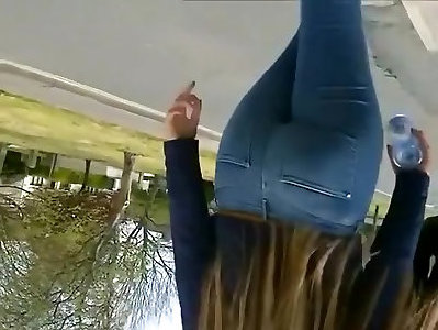 teenie avec un gros cul portant un pantalon en denim