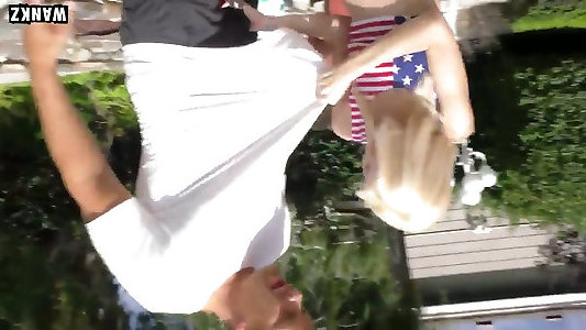 toucher sa bite dure pendant que je montre ma cameltoe dans un petit short sexy et un maillot de bain
