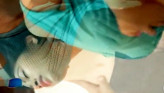 toucher sa bite dure pendant que je montre ma cameltoe dans un petit short sexy et un maillot de bain