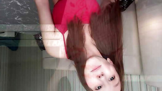 malizioso jess ovest faux-cazzi se stessa in crimson lingerie retrò nylon