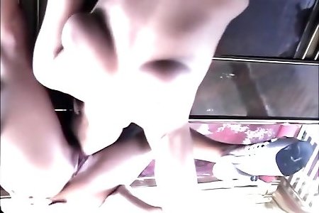 bagnato orgasmo attraverso collant di nylon dopo un giro veloce