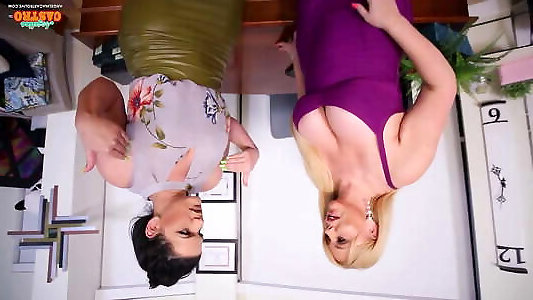 padrona guardando una ragazza bionda succhiare e scopare davanti a lei