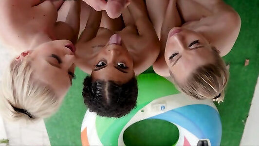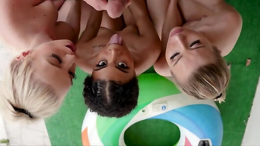 quattro ragazze sono in piscina succhiare e cavalcare un cazzo fortunato
