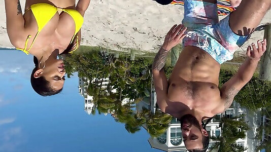 toccando il suo cazzo duro mentre io mostro il mio cameltoe in un sexy pantaloncini e costume da bagno