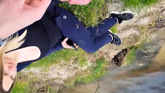 toccando il suo cazzo duro mentre io mostro il mio cameltoe in un sexy pantaloncini e costume da bagno