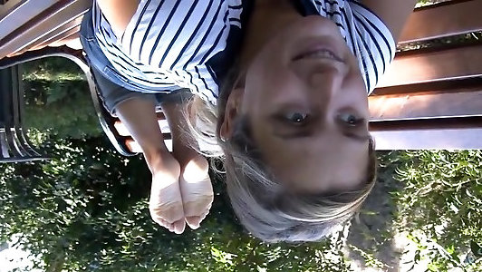 прикасаюсь к его твердому члену, пока я демонстрирую свою камелотку в сексуальных маленьких шортиках и купальнике