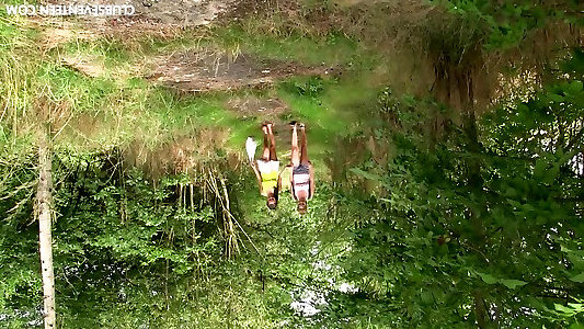 слегка 18-летний лесбийский дуэт ест гладко выбритые вагины друг друга на открытом воздухе