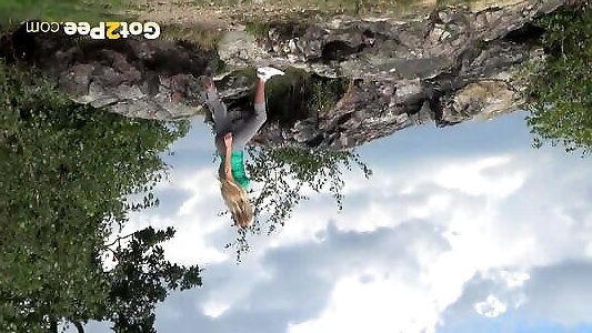 金发辣妹凯蒂天空溅周围在她的小便水坑
